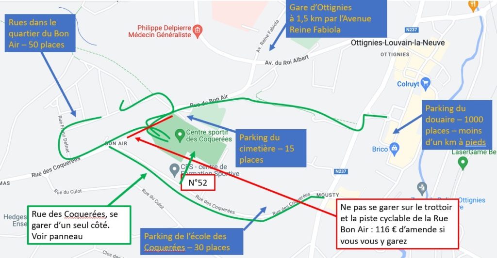🏀 Comment rejoindre le Centre sportif des Coquerées à Ottignies et s’y garer ?